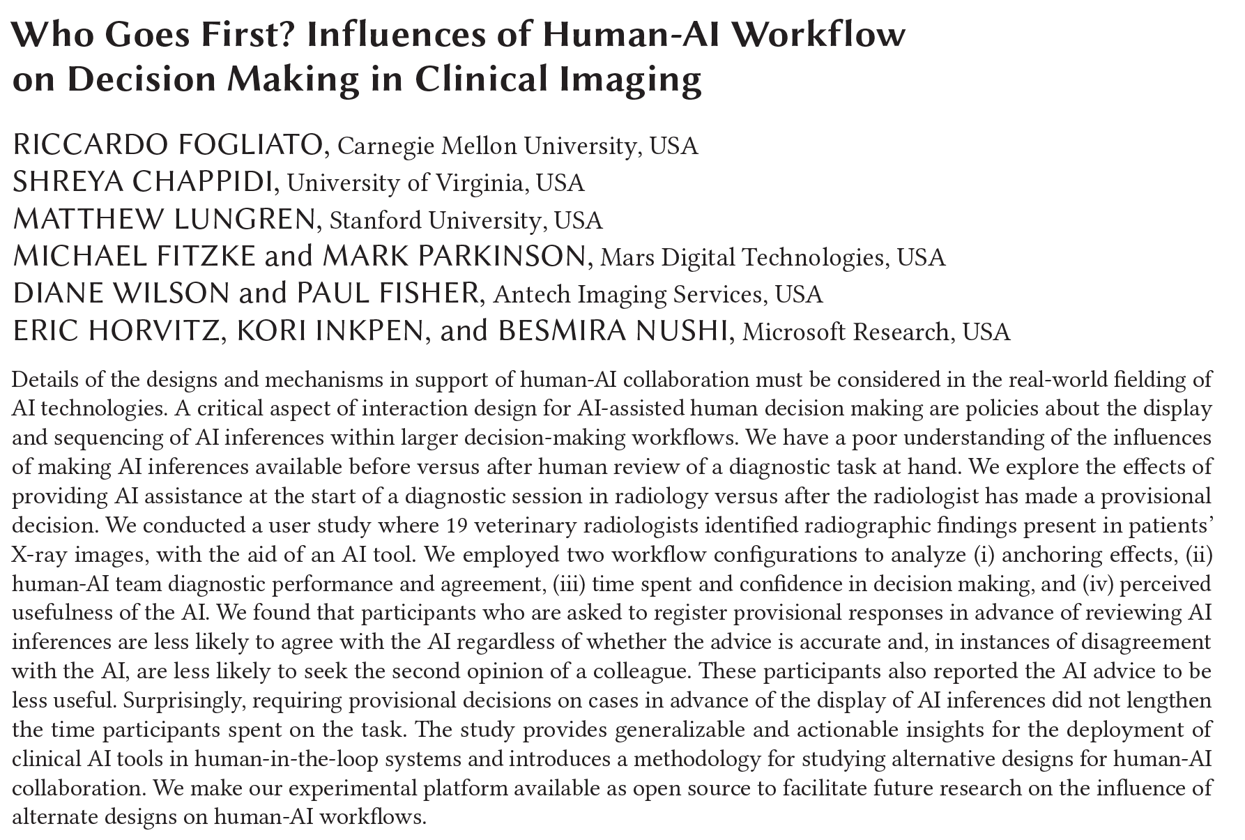 Besmira Nushi On Twitter 1 N Our Facct2022 Paper Shares Insights On A Real World User Study In The Medical Radiology Domain To Better Understand The Impact Of Workflow Design In Medical Decision Making